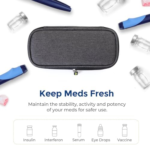 IDEAL SIZE FOR DAILY LIFE. This insulin pen travel case is compact in size 7.7 x 3.15 x 1.38in for easy-carry. The small insulated cooler bag designed in the right size can be held with one hand easily and fit your handbag or backpack. This medication cooler is a great choice for commuting to work or school, outdoor camping or short trips.